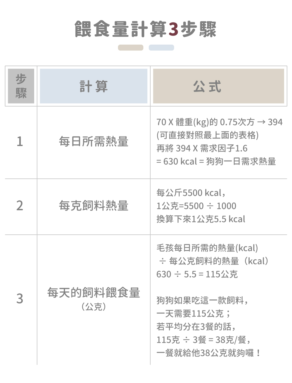 Q2. 狗狗每日需要餵食多少飼料?如何計算?