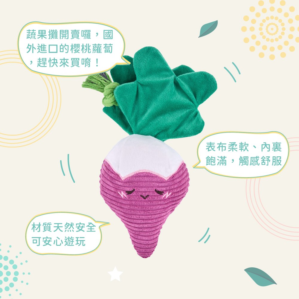 分享到 標籤 ZippyPaws 絨毛有聲 狗狗 狗狗玩具 ZippyPaws 吵鬧蔬果攤 皺紋櫻桃蘿蔔 啾啾聲 狗玩具 寵物玩具 追蹤 商品編號:ZP-1145商品料號:ZP-1145 特惠資訊 滿額禮自選✨滿3500選1件 | 滿7000選2件 | 滿10000選3件 19周年感謝季✨滿5200享96折 | 7000享94折 | 10000享92折 全館滿額贈✨ 高級皺物-櫻桃蘿蔔獨領風騷,汪汪小隊快點剷除它!Q萌Q萌造型,內建啾啾發聲器,根莖葉都可以好好啃咬遊戲,皺紋紙沙沙聲,玩起來更起勁,趕快來蔬果攤挑選吧!- ▌材質:表布非常柔軟,不怕受傷;內裡飽滿 ▌迷你發聲器:小型發聲器▌尺寸:17.7 x 25.4 cm - ▌適用寵物類型:狗狗 ▌適合遊戲類型:你丟我撿、拋接投擲、狗生自嗨、互動陪伴 款式 皺紋櫻桃蘿蔔 NT$335 NT$250 minus plus Line詢問 加入購物車 close 0 購物車 Line詢問 加入購物車